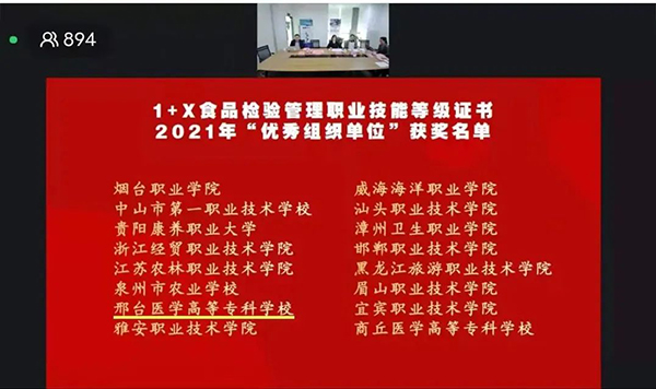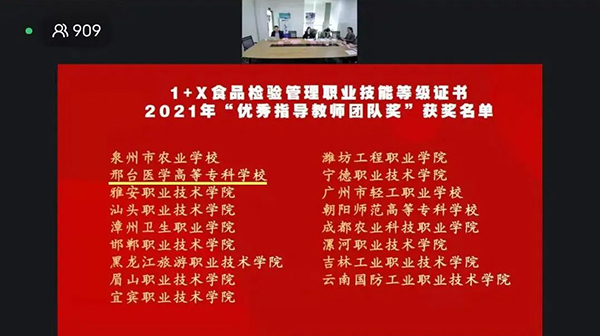 4月8日,2022年“教育部‘1+X’食品检验管理职业技能等级证书”试点工作说明会暨2021年表彰大会在北京举行,beat365官网荣获2021年“优秀组织单位”和“优秀指导教师团队”。
