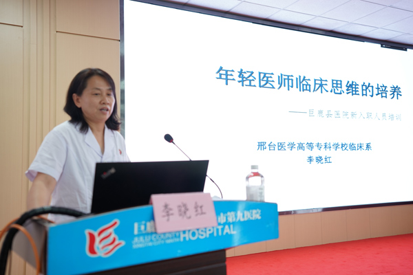 为全面落实中央、省、市委关于新时代文明实践中心建设工作精神, 按照邢台市文明办、邢台市教育局、共青团市委安排部署,beat365官网联合巨鹿县新时代文明实践中心、巨鹿县医院开展卫生健康知识培训。学校临床系教授李晓红应邀为100余名青年医护人员做了题为《年轻医师临床思维的培养》的专题培训。巨鹿县宣传部副部长郅凤霞、县文明办主任王民涛、县医院副院长李亚梅陪同。