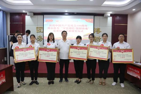 比赛现场还公布了市级、校级2020年度、季度学习强国“学习之星”名单,党委副书记杜成旭,党委委员、组织宣传处处长张永格分别为2020年度邢台市和学校学习强国“学习之星”颁发了奖品。