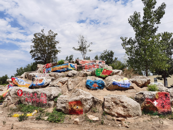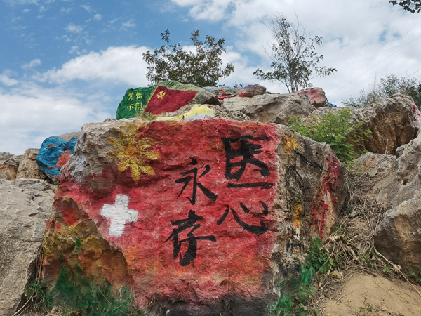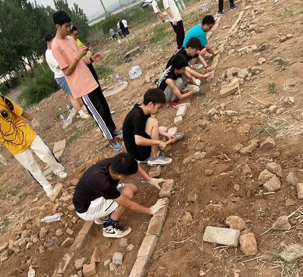 劳动教育实践课场地在4号教学楼楼后空地处,由各班辅导员组织学生开展。2019级各班负责清理空地野草,2020级各班负责在清理干净的空地上铺路,大家分工协作,井然有序,现场一派热火朝天的劳动景象。同学们不辞劳苦的搬运着垃圾和杂草,用一砖一瓦铺出一条整齐平坦的小路。没有砖头,就从空地的另一头去捡,道路不平,就用铲子铲去高处,填平低洼。虽然区域分布较广,但同学们不怕热、不怕累,一个个笑容满面,干劲十足,感受着集体劳动带来的趣味。随即,护理系墨岩书画社和学生会的同学们在山石上书写作画,创作以“庆祝建党一百周年”为主题的书画作品,给嶙峋的石头披上了绚丽的外衣,丰富多彩的作品吸引了师生纷纷驻足观看。
