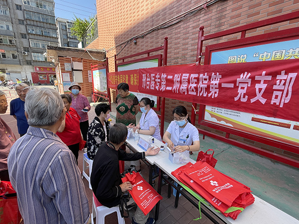 在“我为群众办实事”实践活动中,广大党员干部打党旗、戴党员徽章,亮身份、做贡献,积极发挥专业特长,服务身边人、办好身边事,中医系党总支党员志愿者到邢台市特殊教育学校,利用专业特长为5名学生提供了身体检查、推拿按摩、康复治疗等服务,给家长讲解了正确的保健方法。护理系党总支和药学系党总支党员前往永辉花园社区和医专生活区开展打扫卫生、绿化社区等志愿服务。口腔医学系党总支党员在医专生活区义诊,给居民讲解口腔常见病、多发病的预防控制方法,普及口腔健康常识知识,服务居民50余人次。第一附属医院党委和第二附属医院党委党员专家医疗队到内丘县南赛乡集上赛村和襄都区清风楼社区开展义诊活动,用行动关爱群众,践行医者初心,接受群众健康咨询300余人次,测血压、血糖220余人次,心电图检查70余人次,发放各类健康宣传资料300余份。