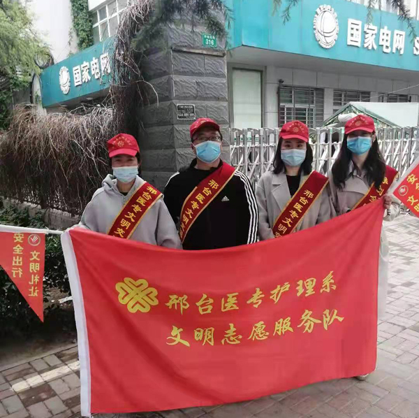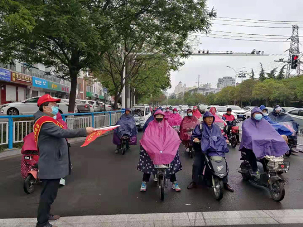 4月21日早上,护理系王立辉、许峰、胡笑然、宋晨妍4名党员教师在邢台市金华岗(冶金路和中华大街交叉口)协助指挥交通。8点左右雨势逐渐增大,他们衣服早已被雨水浸透,但此时正值上班高峰期,为了维持好交通秩序,他们依然坚守岗位,尽职尽责,有效保障了雨天道路交通安全、畅通、有序。