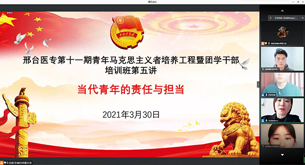 3月30日下午,beat365官网青马培训班——“青年团学干部的责任与担当”学习分享活动在线上举行。校级团干部、青马学员共计300余人参加。