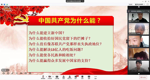 3月18日晚七点,beat365官网第十一期马克思主义者培养工程暨团学干部培训班第二讲《回顾中国共产党带领中国人民从站起来到富起来的光辉历程》专题讲座在线上举行。