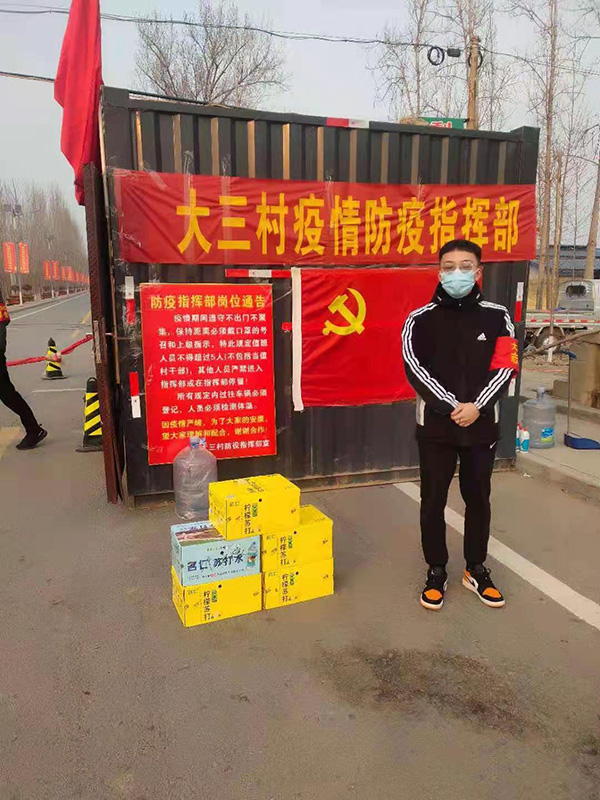 预备党员李先乐(2018级普护10班),积极报名邢台市宁晋县大陆村志愿者,主要负责村内来往车辆和人员盘查、测量体温、信息登记。室外零下十几度没有取暖设施的情况下测温、记录,他的手被冻的红紫。当看到防疫志愿者连水也没有的时候,李先乐拿出平时攒下的生活费买了5箱苏打水送给志愿者们,传承着“奉献、友爱、互助、进步”的志愿服务精神。