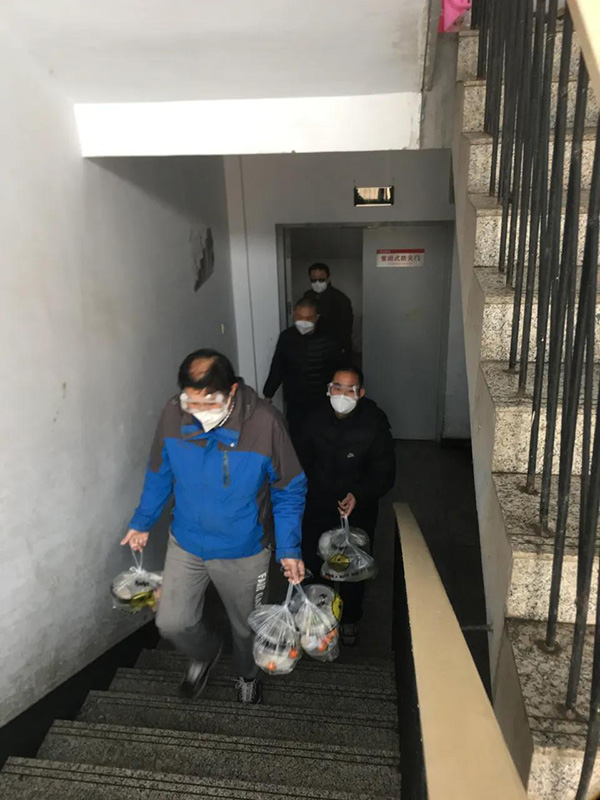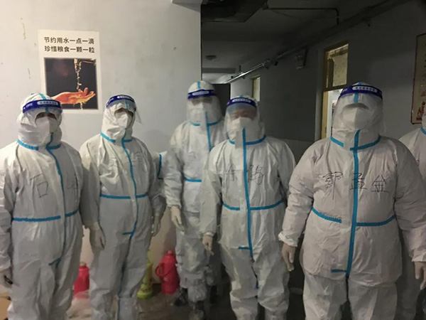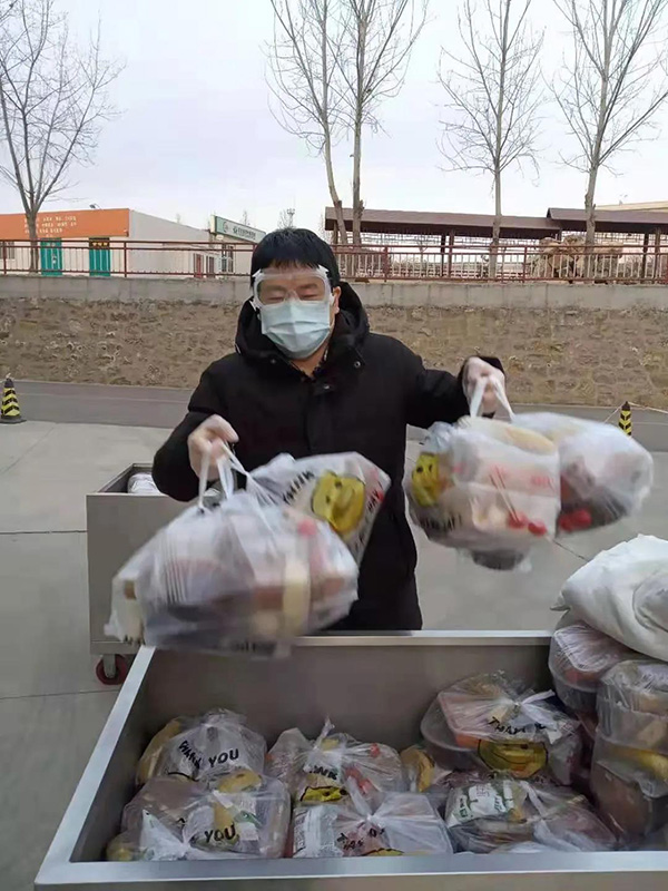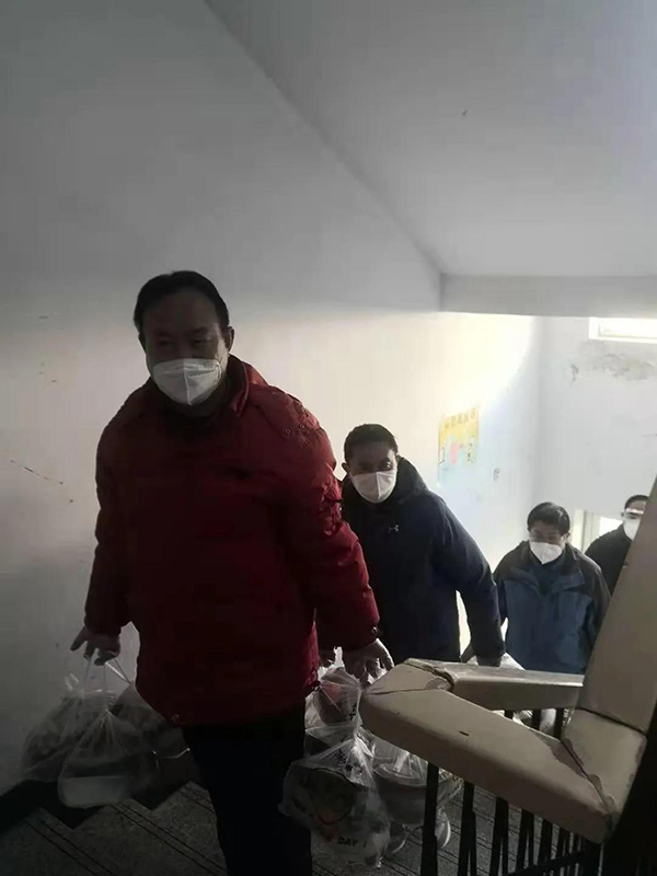 16名队员中,郭梦金、张俊会、姜炳正、邢永川、田新利等5位老师都是“60后”,他们冲锋在前,始终和隔离点的年轻同志共进退。郭梦金老师年龄最大,但拎水、送饭、抬被褥、负重爬楼,哪样也不输年轻人。5位“60后”工作经验丰富,稳重细致,对分发抗疫用品、统计上报隔离人员日常用药信息等工作,都要多次核验,细之又细,绝不落下一件,绝不错漏一项,以认真负责的态度做好隔离人员服务保障工作。队员刘建勋老师是回族人,在隔离点,由于民族生活习惯不同,吃饭是一个大问题,但刘老师说:“我自己想办法,绝不给学校添麻烦,哪怕啃馒头吃咸菜也要完成任务。”