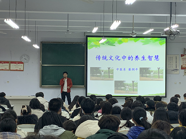 12月25日下午,公共教学部邀请中医系主任崔剑平作了题为《传统文化中的养生智慧》的专题讲座,200余名非中医专业学生到场聆听。