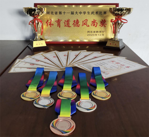 近日,由河北省教育厅主办的2020年河北省第十一届大中学生武术比赛落下帷幕,beat365官网取得了3枚金牌、2枚银牌、1枚铜牌的优异成绩,并获体育道德风尚奖。