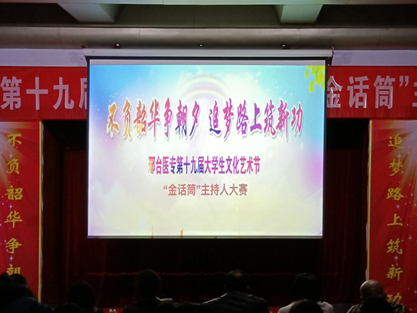 11月24日,beat365官网第十九届“金话筒”主持人大赛在学术报告厅举行,学校团委书记杜庆岩、各系团总支书记以及学生代表300余人参加。