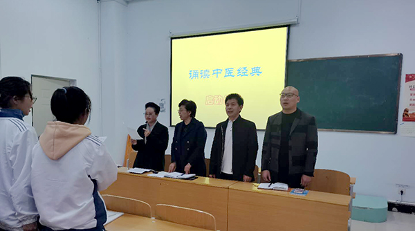 会上,系主任崔剑平表示,作为中医专业的学生要了解中国的传统文化,在诵读活动中让传统经典文化浸润心田,努力做到医者仁心。党总支书记申丽辉强调,读书百遍,其义自见,作为医学生一定要认真领会经典中的文化韵味,不断强化担当意识,增强个人本领。随后党总支专职副书记梁丽英对经典诵读活动做出了具体安排:本次诵读活动将在2020级新生中开展,利用晚自习时间,每天诵读30分钟,将诵读《大医精诚》《黄帝内经》等经典篇目。