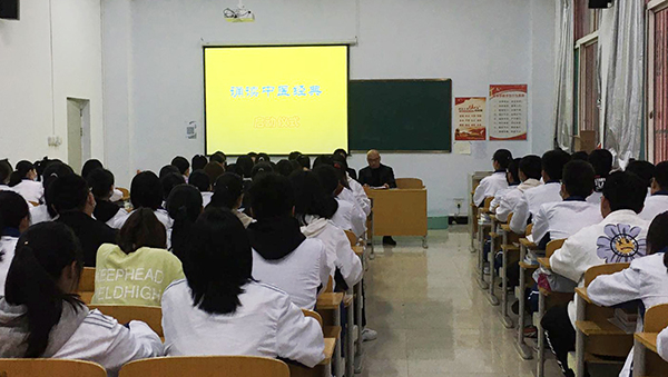 最后,与会师生起立,手托经典,梁丽英带领大家齐声诵读了《黄帝内经》中的精彩段落,朗朗的诵读声在教室上空回荡,将本次经典诵读活动启动仪式推向高潮。