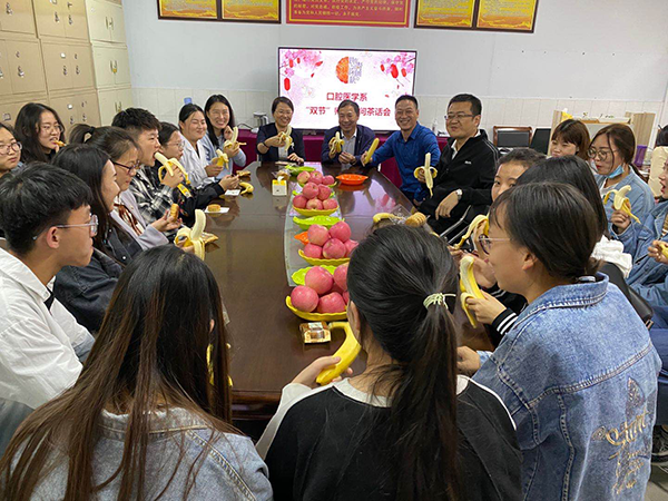 佳节成双至,家国共团圆。在中秋节、国庆节双节来临之际,口腔医学系开展师生茶话会和班级文化艺术活动,让远离家乡的学子在节日里感受到学校的关怀与温暖,师生齐聚一堂,庆佳节、叙生活、话未来,氛围温馨,其乐融融。