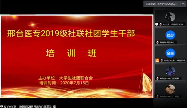 为提高大学生社联社团干部的素养与能力,打造优秀社团干部团队,7月15日至24日,学校团委举办了为期10天的线上社团干部培训班,社联干部及各学生社团负责人共68人参加。