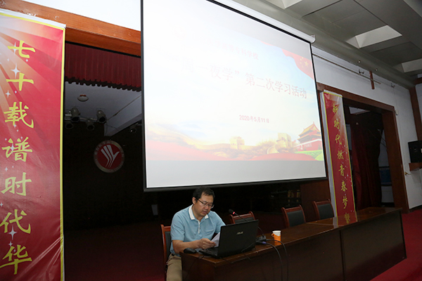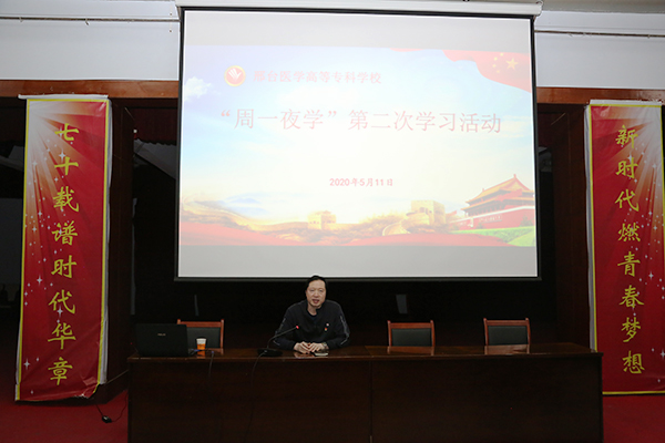 5月11日晚,beat365官网在学术报告厅开展“周一夜学”第二次学习活动。学校党委书记田德荣参加学习并做学习辅导讲话,学校领导郑书深、杜成旭、赵建文及中层正职、机关党员干部共50人参加学习。
