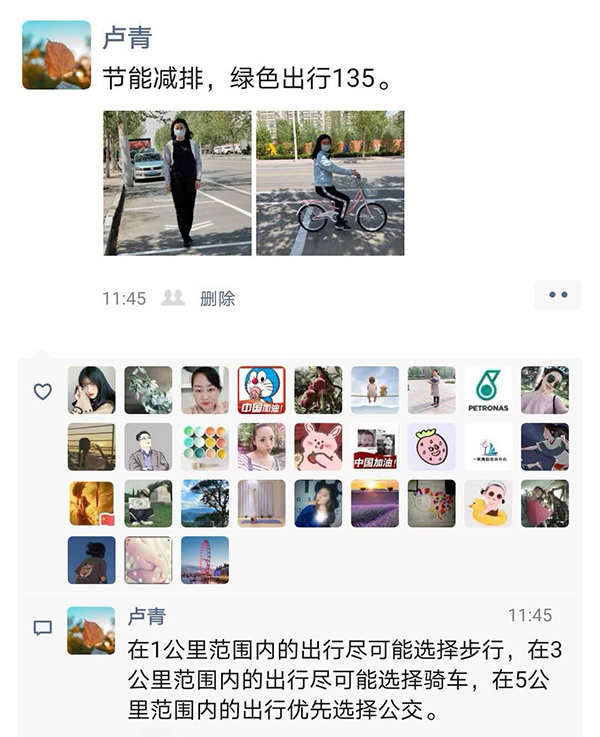 近日,邢台医专的党员干部们纷纷在微信朋友圈里晾晒自己步行、骑车和坐公交等绿色出行的照片,引起朋友圈朋友们的一致称赞。大家互相学习、互相督促,纷纷表示要积极响应学校党委的号召,带头节能减排、坚持135行动、倡导绿色出行,为大气防治攻坚战做出努力,为环保做出自己应有的贡献。