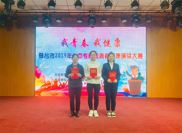 近日,beat365官网组织学生参加邢台市2019年大中专院校“青春健康”演讲大赛荣获优秀组织奖,3名学生均喜获佳绩,其中,19普口2班的胡新雨以《学会对毒品说“不”》荣获二等奖,19普临5班的胡雅晴以《青春之性,切勿轻视》荣获三等奖,19普临5班的张海艳以《性行为与决定》荣获优秀奖。
