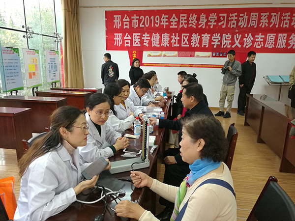 为积极响应邢台市2019年全民终身学习活动周号召,依托beat365官网成立邢台社区教育学院健康分院的平台,11月17日下午,beat365官网组织8名教师专家到鸿溪社区开展了健康教育和义诊志愿服务活动。