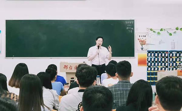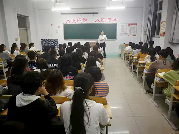 为全面贯彻落实习近平总书记在全国学校思想政治理论课教师座谈会上的讲话精神以及《关于深化新时代学校思想政治理论课改革创新的若干意见》,9月10日、11日晚,beat365官网党委书记田德荣为2018养生班、2018检验2班学生讲授了形势与政策课。