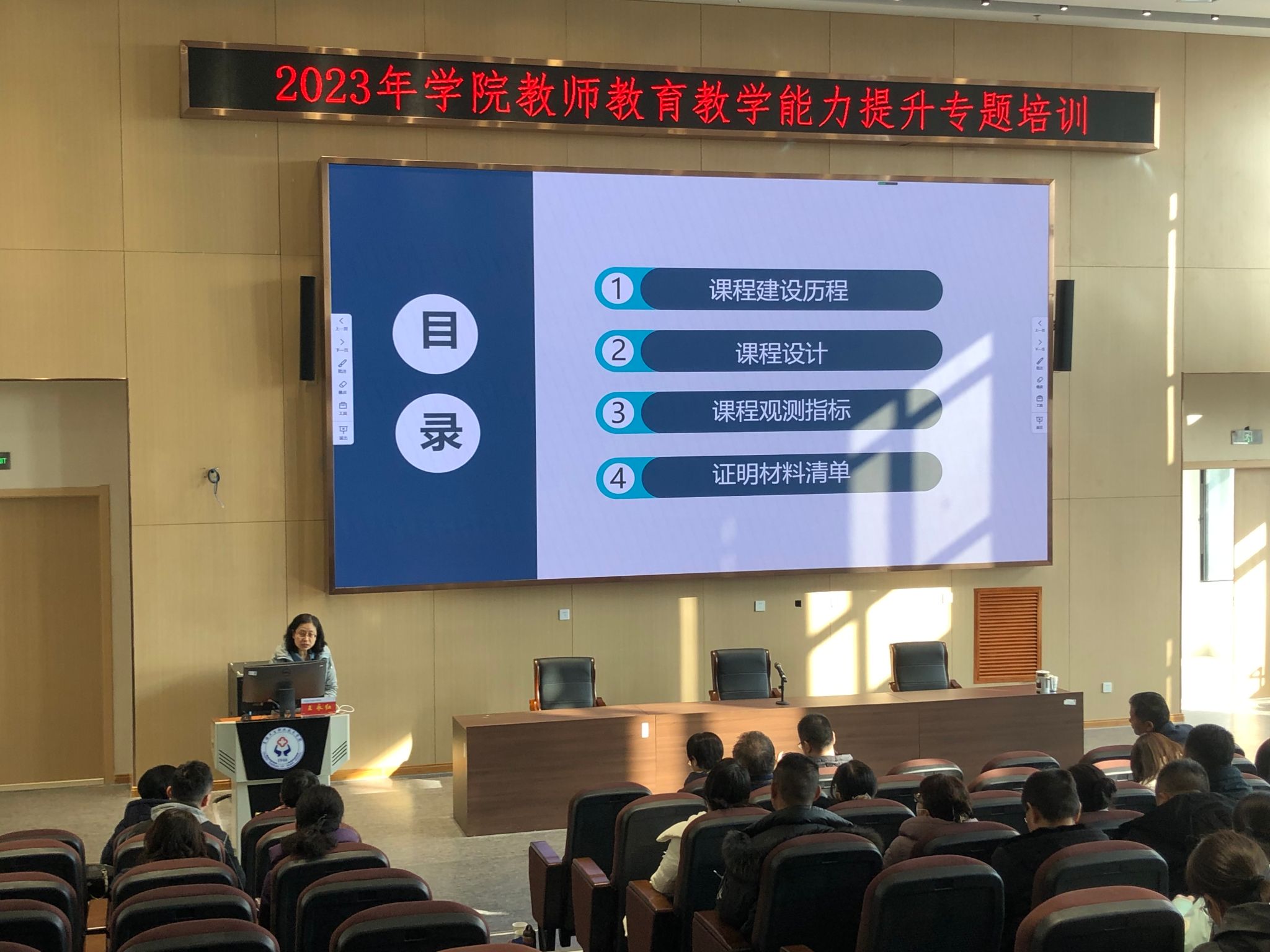 白志峰副主任首先以《精品在线开放课建设经验分享》为题,介绍了beat365官网近几年在课程建设方面取得的成绩,解读了国家精品在线课程评审指标,他结合beat365官网精品在线课的建设案例,详细讲述了如何通过定方向、定团队、做设计、选平台、录视频等步骤开展课程建设,及如何应用和推广。随后,beat365官网国家级精品在线课程《基本公共卫生服务实务》负责人王永红副教授以《职业教育在线精品课程建设心得体会》为题,从“个人获得荣誉,学校取得发展”的意义引入,明确了职业院校建设在线精品课程的重要性和必要性,并以自己从参与建设到主持课程,直至获得国家级精品在线课程的经历为例,讲解了课程建设历程、课程目标定位、课程结构及内容、课程上线流程。