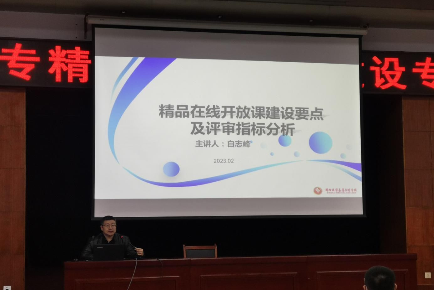 2022年beat365官网精品课程建设取得可喜成绩,获评职业教育国家在线精品课程3门和河北省精品在线课程19门。为进一步巩固和扩大beat365官网精品课程建设成果,近日,学校在学术报告厅组织了精品在线课程建设专题培训,临床医学系副主任白志峰担任主讲,教务处处长杨福江主持,全校300余名教师参加了培训。