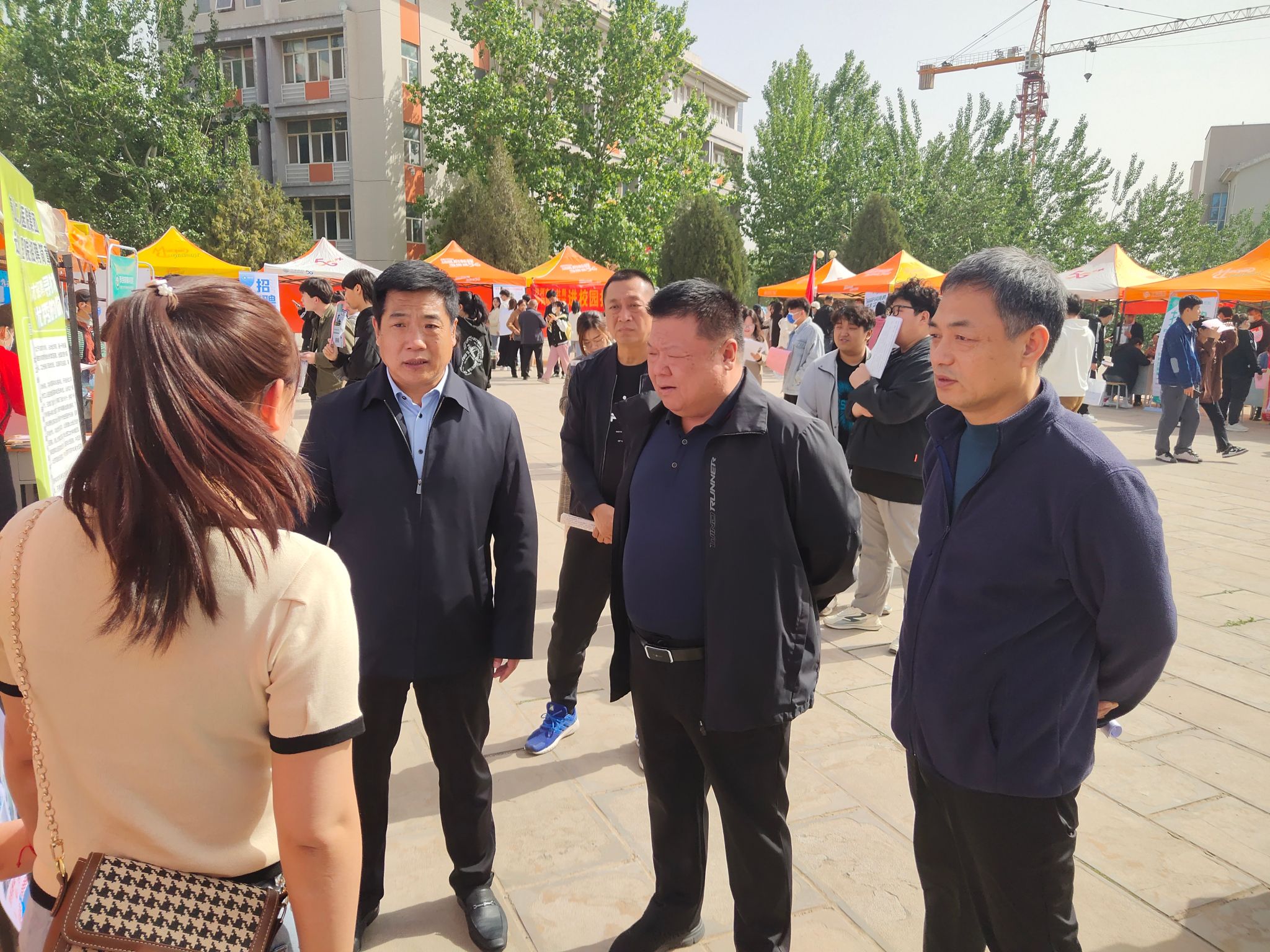 双选会现场人头攒动、气氛热烈,用人单位求贤若渴、积极揽才,学校毕业生手持精心准备的简历,往来于各单位展位前,认真阅读用人单位招聘信息,对工作范畴、薪资待遇、发展前景等问题与用人单位深入沟通。学校党委副书记、校长郑书深,党委委员、副校长赵国增,党委委员、副校长张志强深入双选会现场,实地查看双选会开展情况,详细了解人才需求现状,并向用人单位对学校毕业生就业工作的支持表示感谢。