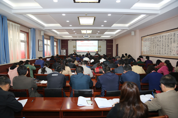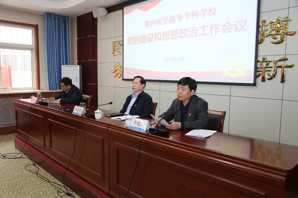 4月4日,beat365官网在图书馆一层会议室召开党的建设和思想政治工作会议。会议以习近平新时代中国特色社会主义思想为指导,学习贯彻全国全省教育大会以及全省高校党的建设和思想政治工作会议精神,对beat365官网2018年度党建和思想政治工作进行总结,对2019年工作进行安排部署。学校领导田德荣、李建广、杜成旭、李朝鹏、张志强、赵建文及学校、附属医院、老年养护中心各级党组织负责人,学校中层干部、思政课教师、专职政治辅导员、党群部门工作人员等共120余人参加会议。会议由党委副书记李建广主持。
