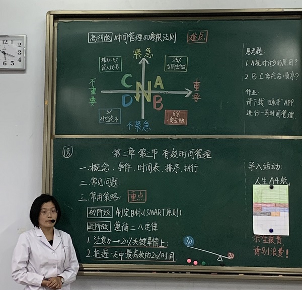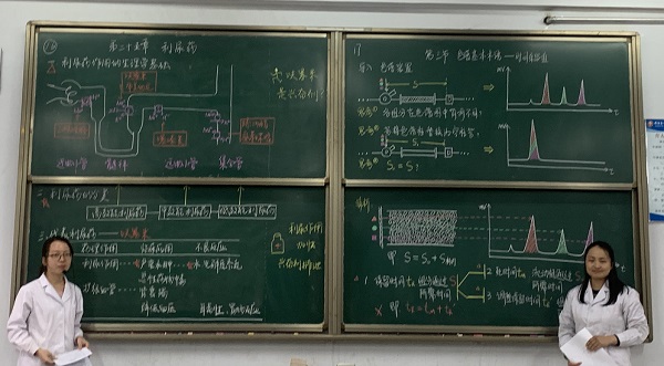 此次决赛现场粉笔板书书写组织形式较往年不同,参赛选手现场随机抽号分别定位在三个阶梯教室,按计时要求有序书写粉笔板书,评委们则采取流动式评比打分,整场比赛节奏感强、省时高效。参赛教师板书书写规范、设计新颖、布局合理、层次分明、图文并茂。经过连年教师板书书写设计大赛的扎实开展,教师们的板书书写设计水平有了明显提高,展示出深厚的板书书写设计功底。最终,基础医学部刘少斌、药学系孙慧杰两位老师荣获大赛一等奖。