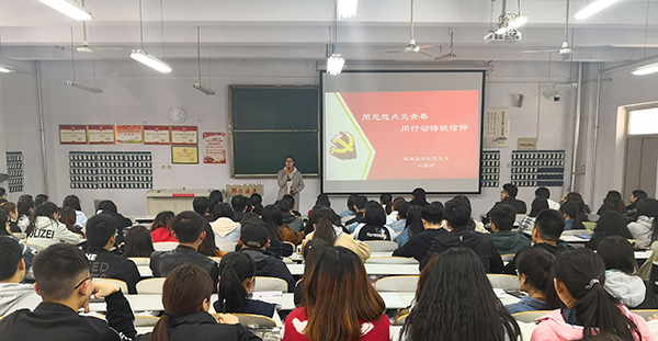 4月10日下午,临床医学系党总支按照“党课月”计划安排,在2018级普临1班教室开展了“用思想点亮青春,用行动铸就信仰”党课教育活动,由系党总支专职组织员达朝玲授课,全体入党积极分子参加。