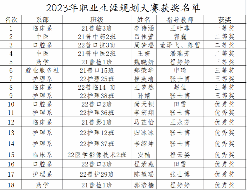 大赛自4月份启动,经初、复赛选拔,18名选手脱颖而出进入决赛。决赛中,各位选手深入剖析自身优劣势,合理规划职业目标,详细制定实施措施。2021级普临3班李诗涵励志成为一名救死扶伤的临床医生,她分析了自身与职业的适配度,围绕如何实现目标愿景,确定了短期、中期、长期三个阶段的奋斗方向和具体措施,努力将人生理想融入国家事业。2022级普口技3班周梦瑶将自己的职业规划同弘扬工匠精神相结合,立志学精学透专业技术,做一名优秀的口腔医生,为医疗卫生事业做更多贡献。选手们激情昂扬的规划分享,充分彰显出beat365官网学子将个人志向融入民族复兴伟业的使命担当。经过激烈角逐,最终评出一等奖1名、二等奖3名、三等奖5名、优秀奖9名。