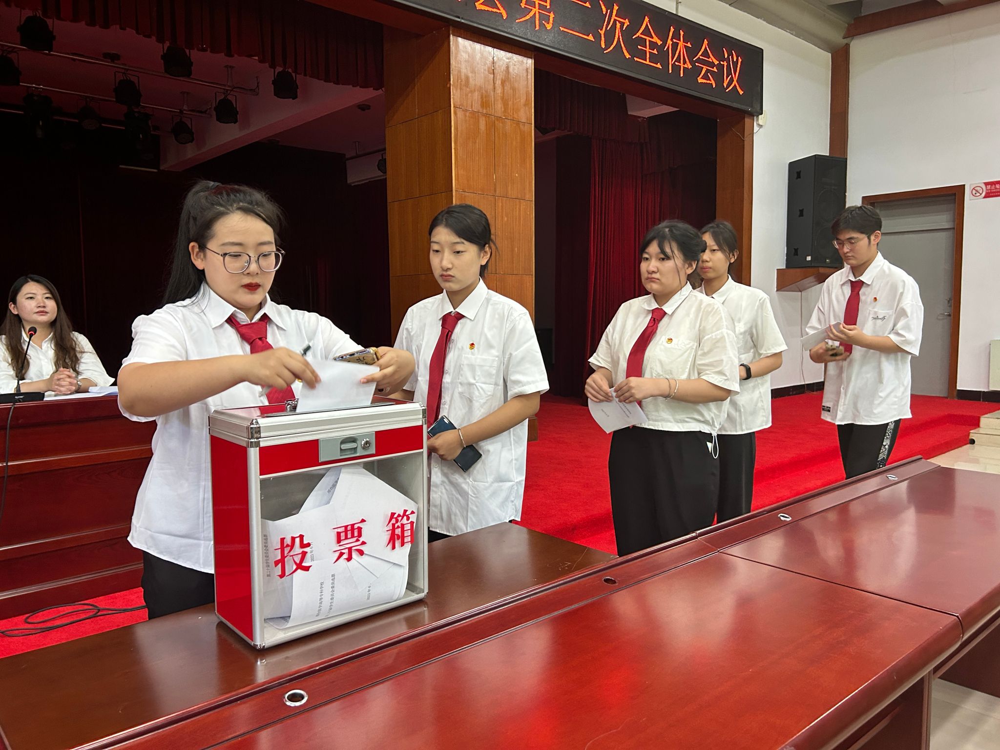 12时,大会在《共青团团歌》中圆满落幕。随后,第二十届学生委员会召开第一次全体会议,选举产生了新一届学生会主席团,beat365官网22级学生赵靓卿、马洁、马溥阳、朱洪升、沈翀当选为第二十届校学生会主席团成员。