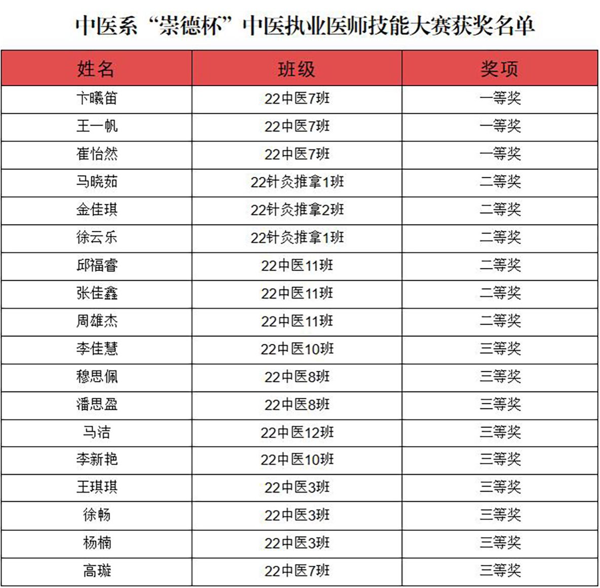 经初、复赛选拔,18名学生进入决赛,围绕望诊、问诊、脉诊和舌诊四项实践技能同台竞技。比赛在网络平台同步直播,全系学生均可在线观摩学习。比赛中,同学们沉着冷静,操作规范,熟练地完成望舌、失眠问诊等比赛项目。五名临床经验丰富的中医专业教师担任评委,严格按照国家中医执业医师资格实践技能考试要求进行评分。经过激烈角逐,评出一等奖3名、二等奖6名、三等奖9名。