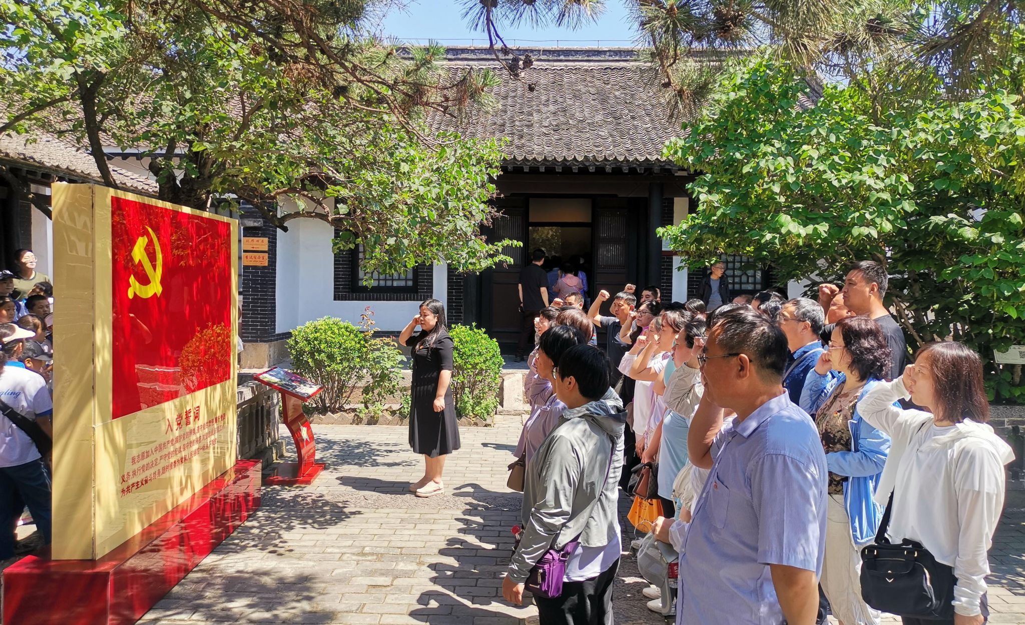 大家先后来到129师司令部旧址、将军岭、陈列馆等地,详细了解129师转战太行、创建晋冀鲁豫抗日根据地的革命历史和刘伯承、邓小平、徐向前等老一辈革命家带领官兵浴血奋战、奋勇抗敌的辉煌历程。参观中,大家被老一辈革命家英勇顽强、坚贞不屈的革命精神深深震撼,充分体会到他们坚定的共产主义信仰和不畏牺牲、前赴后继的奉献精神。在刘伯承、邓小平亲手栽种的丁香花和紫荆树前,大家面对鲜红的党旗重温入党誓词,再次感悟初心使命,接受灵魂洗礼。