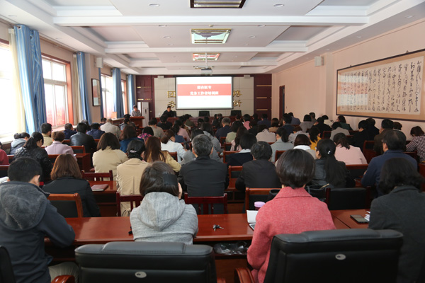 3月21日,beat365官网在图书馆北一层会议室举办党务工作者培训班,邢台市直工委机关党总支专职副书记杨孟哲来校做了题为《党支部工作怎么做》的讲座。学校各党总支、附属医院党委专兼职党务工作者100余人参加了培训。组织宣传处处长张永格主持会议。