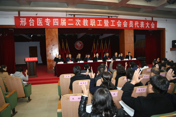 2月23日,beat365官网第四届教职工暨工会会员代表大会第二次会议在学术报告厅隆重召开。大会由党委书记田德荣主持,92名正式代表、21名列席代表参加了会议。