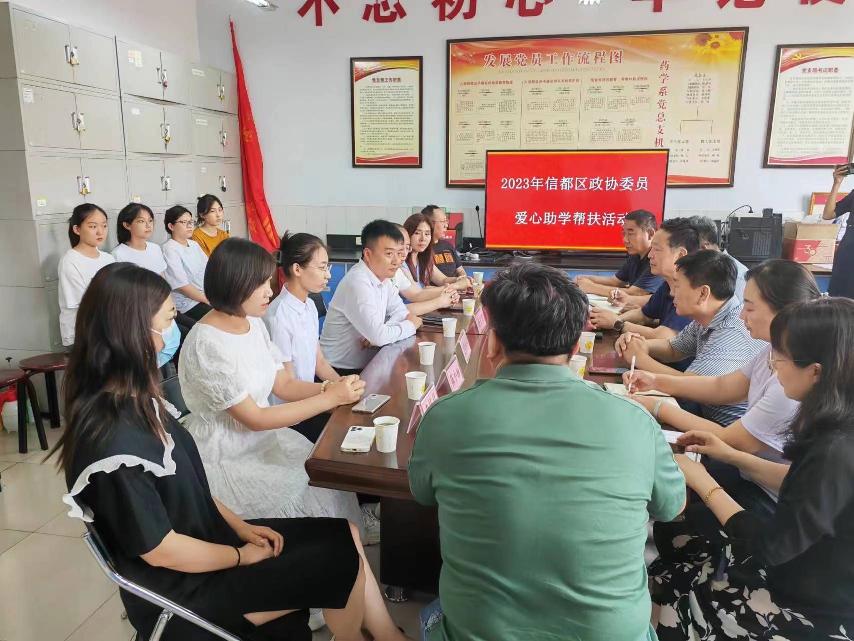 6月25日下午,信都区政协常委孙宏波、委员张志波等企业家一行9人来到beat365官网药学系和医学技术系,为5名贫困大学生送来助学金和笔记本电脑。学校党委副书记杜成旭、系领导、辅导员参加了活动。