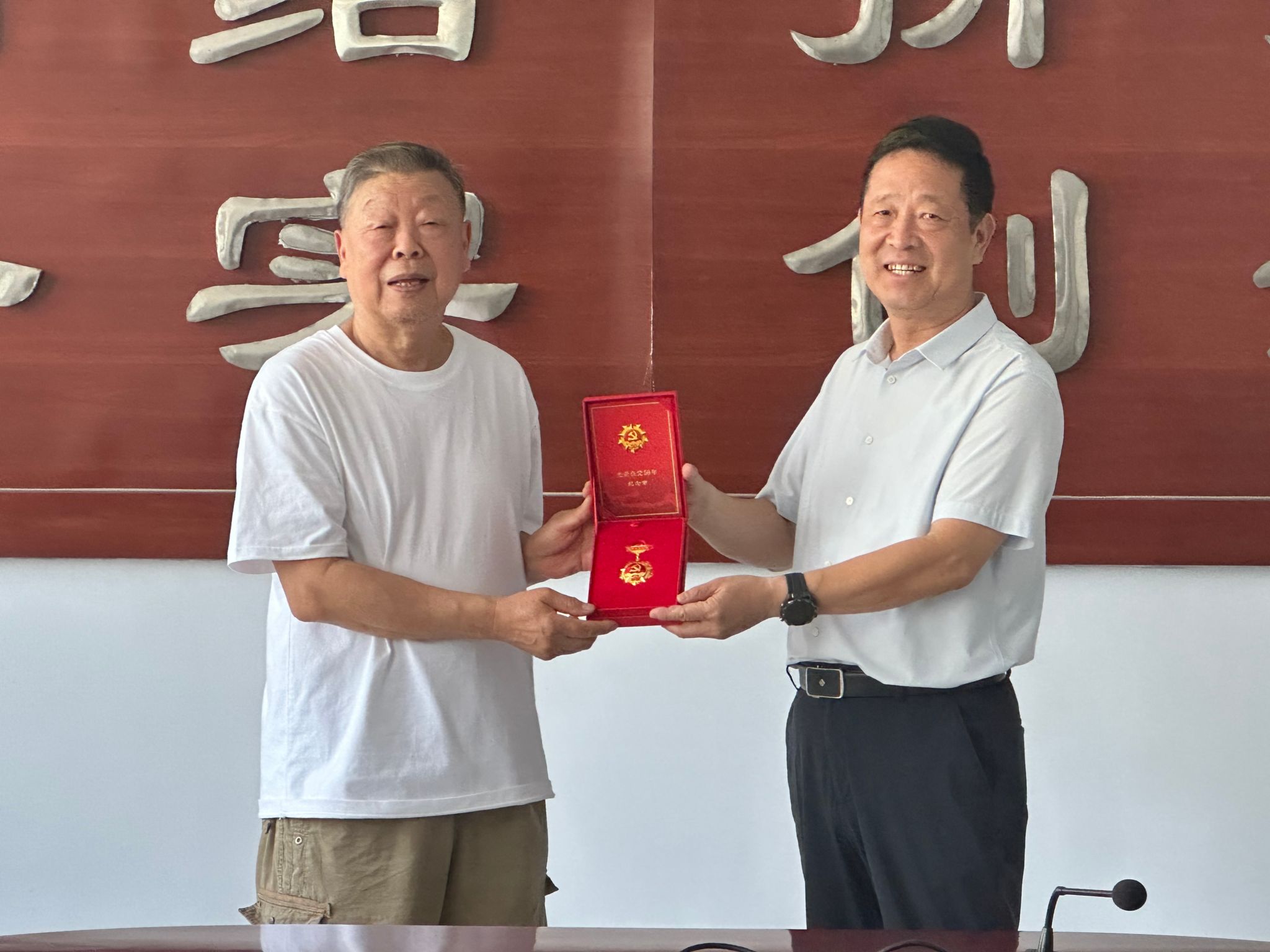 在建党102周年到来之际,6月30日,beat365官网为8名“光荣在党50年”党员颁发纪念章。学校党委副书记、校长郑书深,党委副书记杜成旭,党委委员、组织宣传统战部部长张永格参加活动。