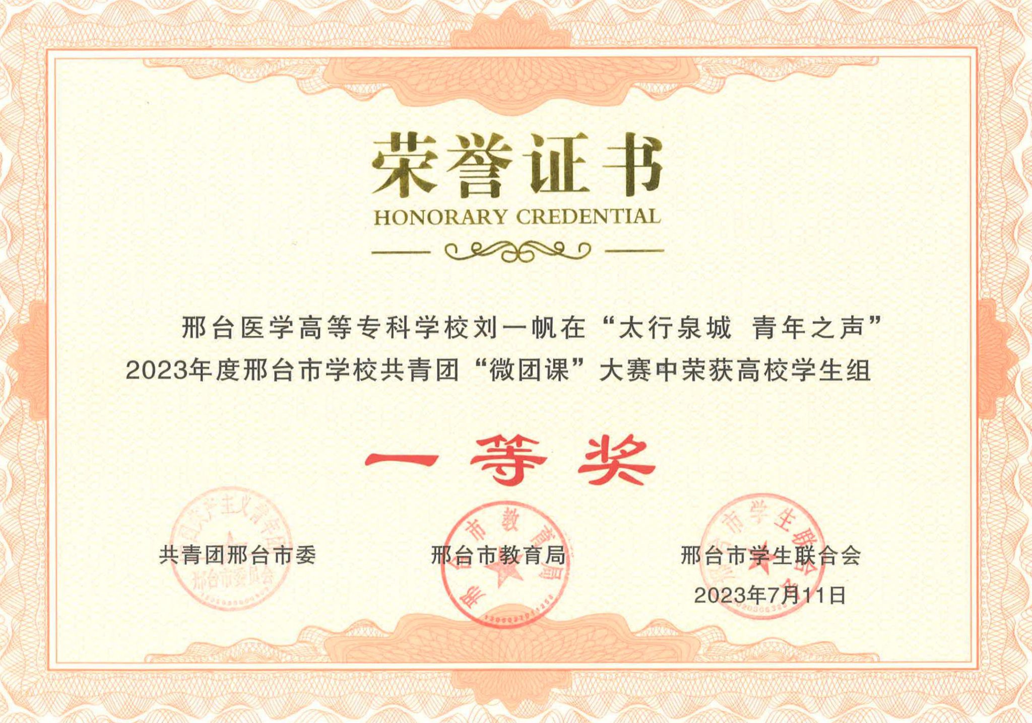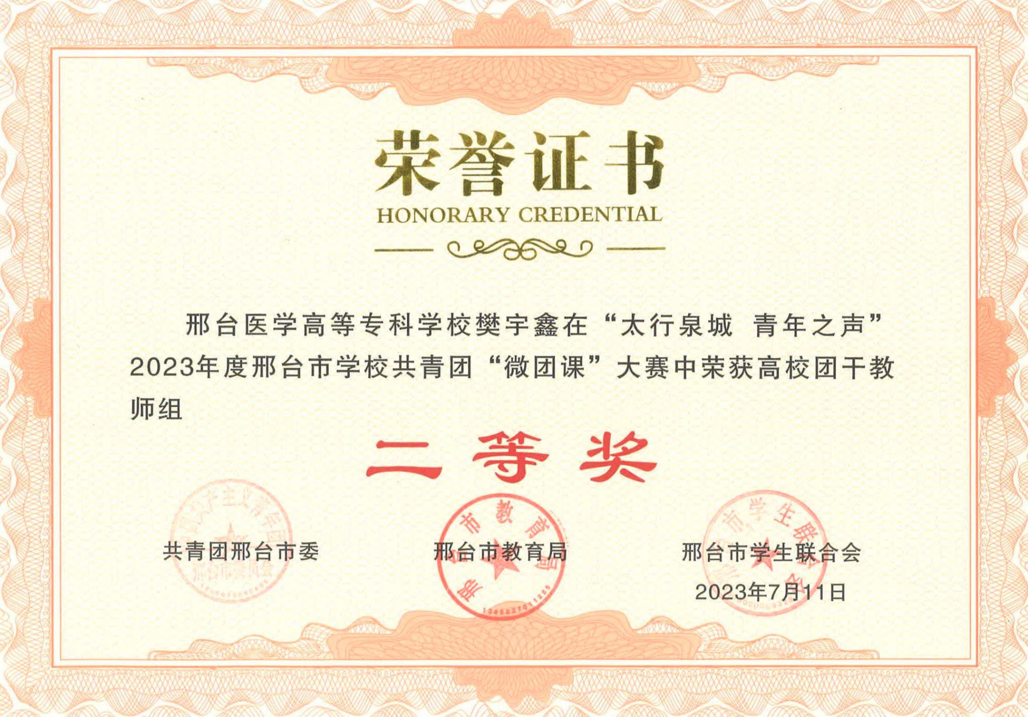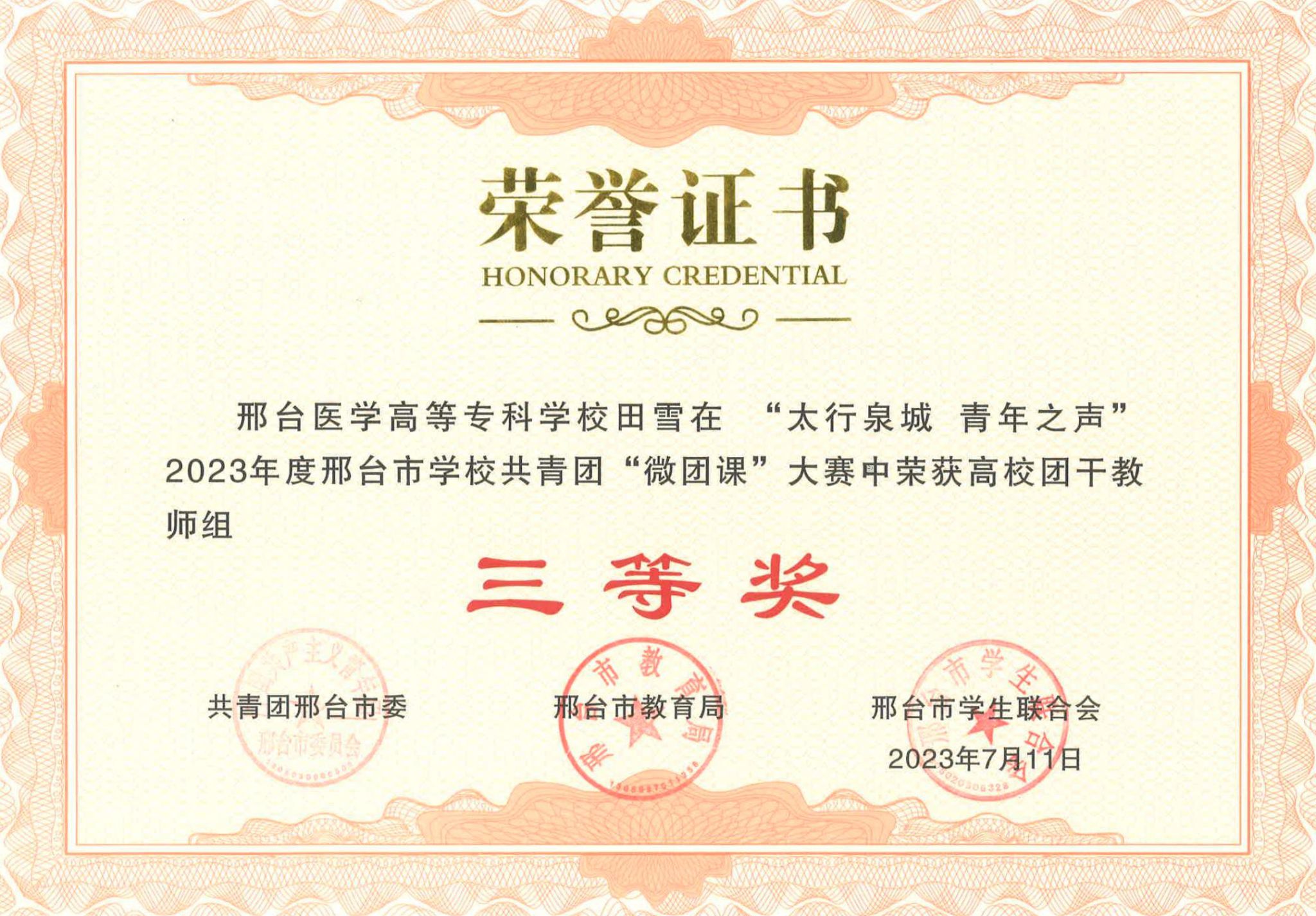 近日,由共青团邢台市委、邢台市教育局、邢台市学生联合会主办的2023年邢台市学校共青团“微团课大赛”成绩揭晓。beat365官网荣获高校团干教师组一等奖1名、二等奖1名、三等奖1名,高校学生组一等奖1名。