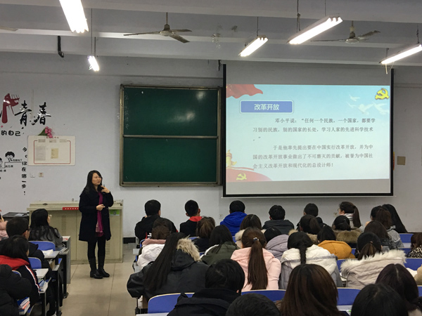 讲座中,王振敏书记以歌曲《春天的故事》引入主题,介绍了改革开放的历史背景,详细列举了“建设具有中国特色社会主义社会”的改革开放历程,讲解了“把工作重心转移到经济建设上来”的具体措施,对比了改革开放前后的人们生活各个方面的变化,也向我们展示了改革开放以后国家在经济、外交、教育、科技、公铁路建设、体育、文化和军事七方面取得的辉煌成就。最后,王振敏书记围绕“作为新时代的新青年如何担负起历史使命”,要求同学们在日常生活和学习中,大力发扬自强不息、艰苦奋斗的精神,锤炼勇于克服困难、不屈不挠的坚强意志,增强社会责任感,情系祖国,关爱社会,立志报效祖国。