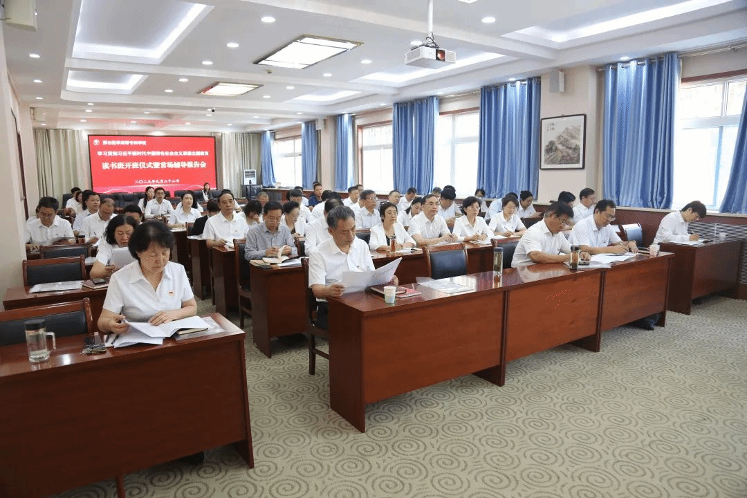 9月22日上午,beat365官网举行学习贯彻习近平新时代中国特色社会主义思想主题教育读书班开班仪式暨首场辅导报告会,学校和附属医院处级以上干部参加。校长李建广作首场专题辅导报告。党委副书记杜成旭主持会议。