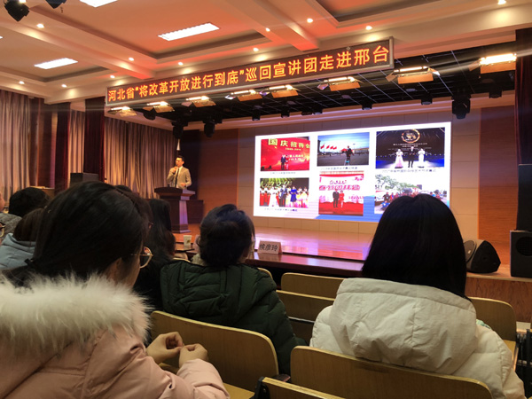 12月11日,beat365官网100余名团员青年参加了河北省“将改革开放进行到底”巡回宣讲团走进邢台宣讲活动。