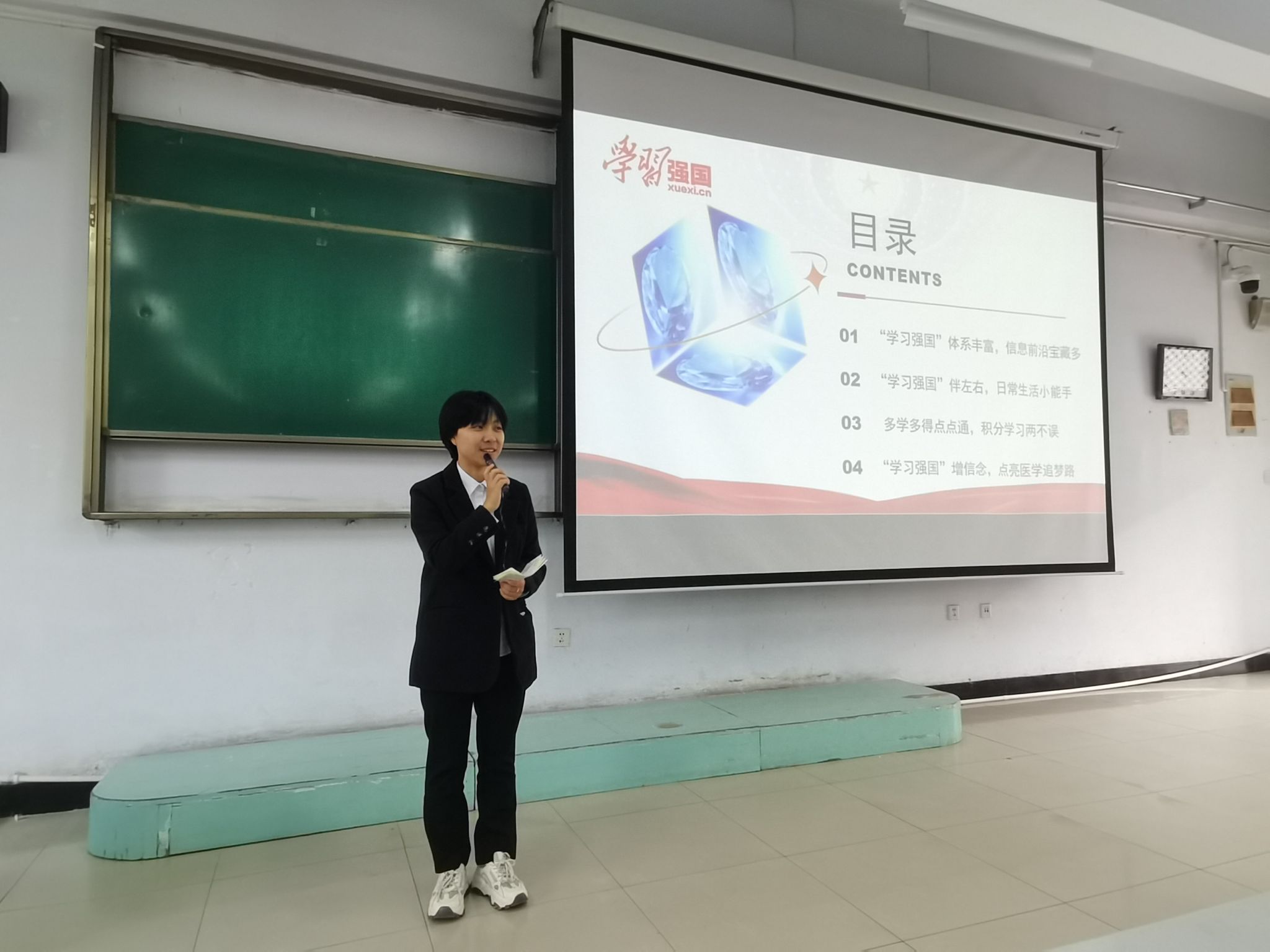 宣讲活动中,宣讲团成员、组织宣传统战部王烈老师阐明了学校大力推广“学习强国”学习平台对培养良好学习习惯、倡导健康生活方式的重要意义,从“提升成绩,助你考试一路通关”“开阔视野,助力文化活动开展”两个方面详细讲解了如何利用学习强国促进学习,提高综合素质。宣讲团成员、2022级临床8班李沛彤介绍了学习强国的各功能模块,号召大家充分利用学习强国的优质学习资源,坚定理想信念,勤于学习、善于学习,不断提高自己,锤炼过硬本领,为健康中国建设贡献青春力量。