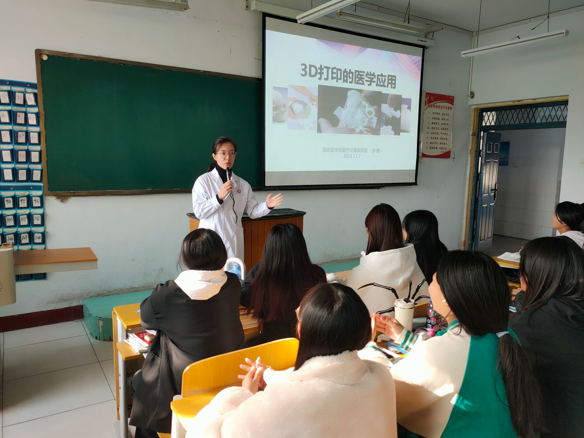 11月7日下午,临床医学系举办主题为《3D打印的医学应用》党员志愿服务讲座,医疗设备教研室郝婕老师担任主讲,2023级医学影像技术专业学生代表120余人到场聆听。