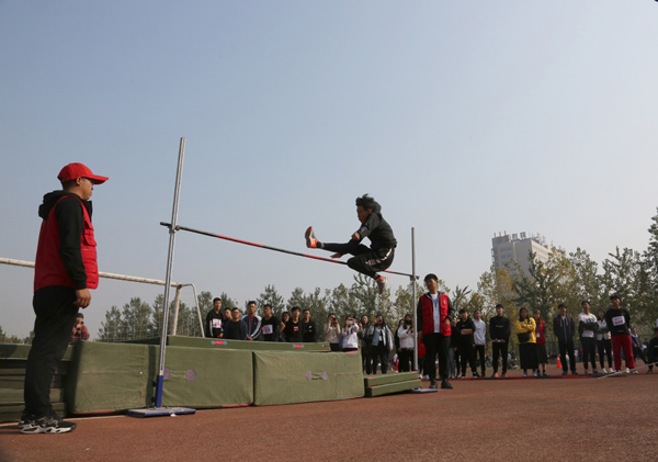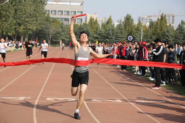 学校党委书记田德荣宣布运动会开幕并鸣枪后,紧张激烈的赛事正式展开。本次运动会共设有20个集体和个人项目,其中学生12项、教师8项,参赛人数达1000余人。在跑道上,发令枪一响,运动员们飞速向前,矫健的身姿在拉拉队的加油声中快速冲过终点。在跳高场地,随着横杆的不断升高,健儿们每一次漂亮的过杆都赢得一阵掌声与喝彩。在铅球场上,身材魁梧的运动员稳稳托着沉重的铅球,转身、挥臂,铅球划过一道优美的曲线远远落下……比赛中,运动员们奋勇争先、努力拼搏、敢于超越,充分展示了beat365官网师生奋勇拼搏的昂扬斗志和争创一流的精神风貌。播音员不时播出获奖同学的佳绩,各系踊跃向大会投稿;观看的啦啦队更是激情澎湃,助威声震耳欲聋,此起彼伏。