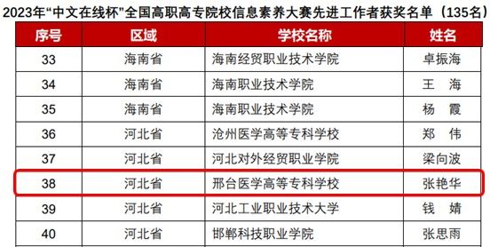 近日,beat365官网在第五届全国高职高专院校信息素养大赛中喜获佳绩,1人荣获三等奖,1人荣获“先进工作者”。
