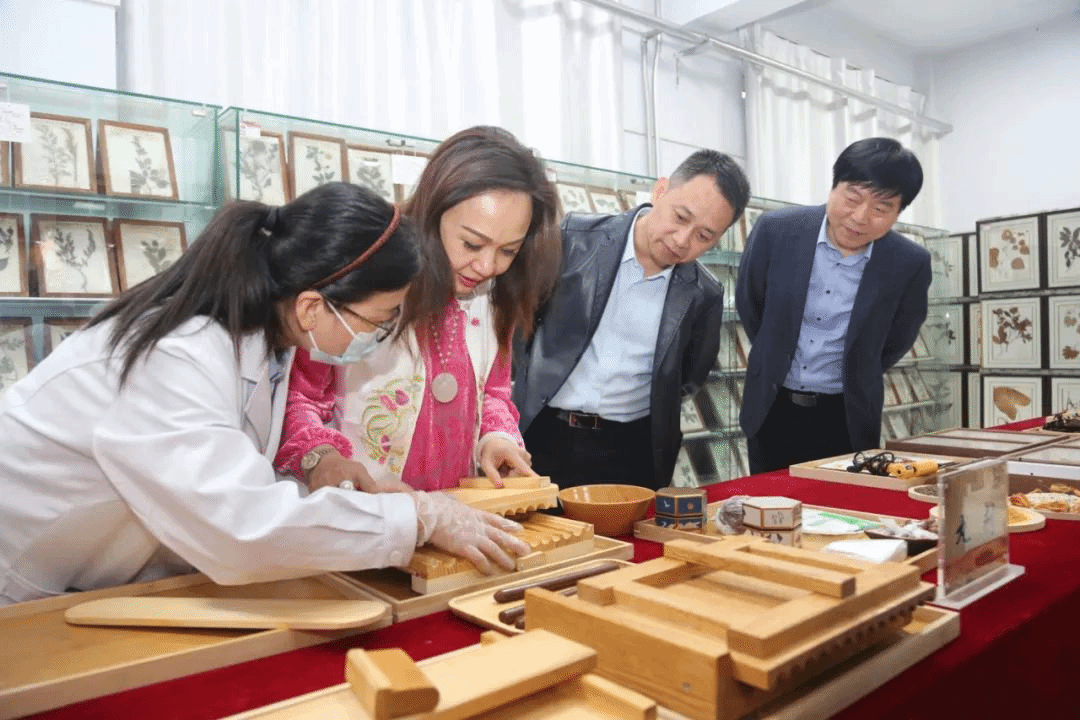 许琳董事长一行先后参观了中医药文化长廊、中药真伪鉴别室、方药调剂实训室、中药标本展厅、传统针灸实训室和中药炮制及药膳实训室,在中医手工实训室亲手制作中医丸剂,在针灸虚拟仿真实训室亲身感受针灸虚拟仿真技术。