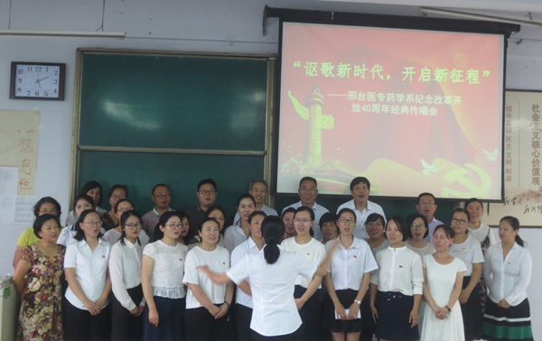 二是举办一次经典歌曲传唱活动。以各党总支为单位,在全校师生中举办“讴歌新时代,开启新征程——邢台医专纪念改革开放40周年经典传唱会”,重温了《没有共产党就没有新中国》《团结就是力量》《保卫黄河》《打靶归来》《我爱你中国》等一首首经典老歌,师生用嘹亮的歌声唱出了对党和祖国的热爱,歌颂了改革开放取得的成就,激发了师生面向未来的豪情。