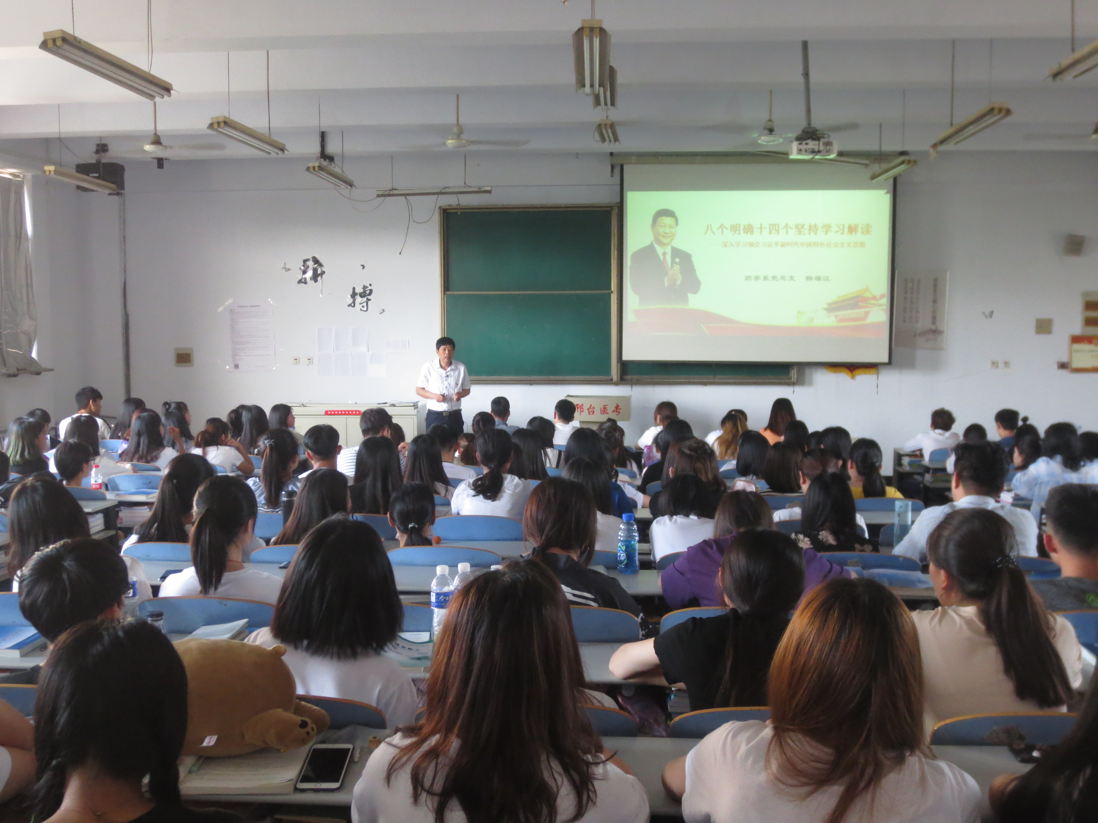 为深入学习领会习近平新时代中国特色社会主义思想,5月24日下午,药学系党总支在2017级普检1班教室举办了“八个明确 十四个坚持学习解读”——深入学习领会习近平新时代中国特色社会主义思想专题讲座,系党总支书记杨福江主讲,150余名学生党员和入党积极分子参加了讲座。