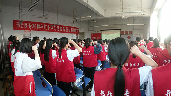 5月8日第71个世界红十字日。为纪念世界红十字日,响应河北省红十字会的号召,弘扬“人道、博爱、奉献”的红十字精神和“奉献、友爱、互助、进步”的志愿服务精神,提升beat365官网大学生的道德实践与社会服务的意识与能力,5月8日,团委在阶梯教室举办2018年红十字志愿服务项目启动仪式。