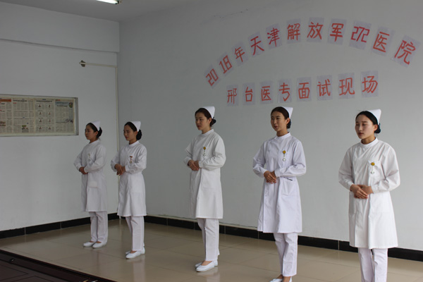 3月28日,中国人民解放军第272医院护理部高祥云、于涛两位专家在实习管理处处长宋书群的陪同下,先后到皇寺校区、校本部对护理专业、医学影像技术专业66名学生进行了面试选拔。面试分为自我介绍及专家提问两个环节。面试中,同学们着装整齐,精神饱满,举止大方,应对有素,展示了良好的精神风貌、心理素质、较强的逻辑思维能力,获得两位专家的一致好评。最终,共有29位优秀学生顺利通过面试。