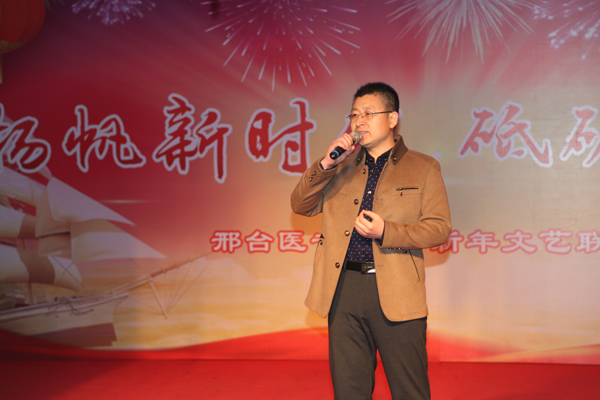 党委副书记李建广代表学校党委、校委发表了热情洋溢的新年贺辞,向全体教职员工、离退休老同志、全体同学致以节日的问候和美好的祝福。他指出,过去的2017年是全校上下勠力同心、辛勤耕耘、开拓创新、昂扬奋进的一年,学校在建设特色鲜明的医学院校的进程中取得了不平凡的业绩,党建和思想政治工作全面加强,内涵建设不断深化,教学和基础设施建设持续加强,各项管理科学规范,精神文明建设捷报频传,三院一中心健康发展,学校先后荣获河北省文明校园、河北省教育系统优秀志愿服务先进单位、邢台市文明单位、邢台市志愿服务先进工作单位、邢台市舆情信息工作先进单位等荣誉百余项。展望2018年,他希望,全校师生要以十九大精神和习近平新时代中国特色社会主义思想为指引,不忘初心、牢记使命,以晋升特色鲜明、实力突出的应用型医学本科院校为奋斗目标,攻坚克难、砥砺奋进、不负芳华、真抓实干,创业兴校、立德树人,为培养更多优秀人才、促进经济社会发展、提高人民群众的健康水平做出新的更大贡献。